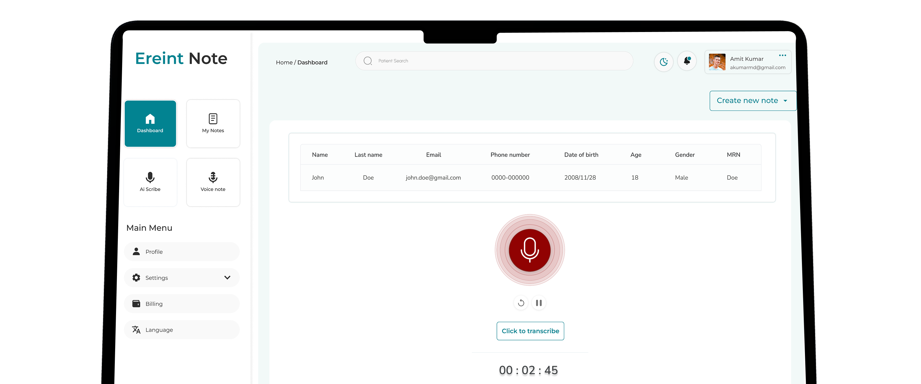 Ereint’s intelligent tools simplify every step of clinical documentation from transcription to summaries, helping doctors save time and focus on patient care.